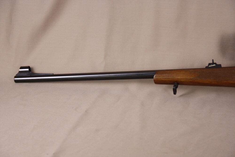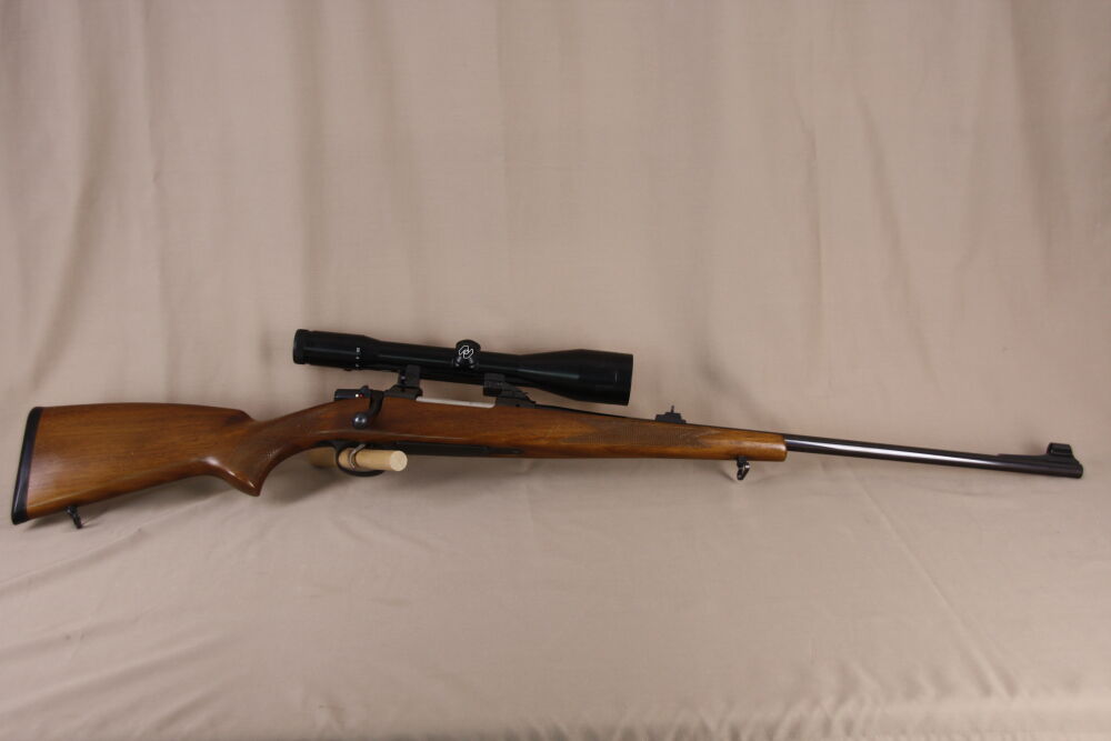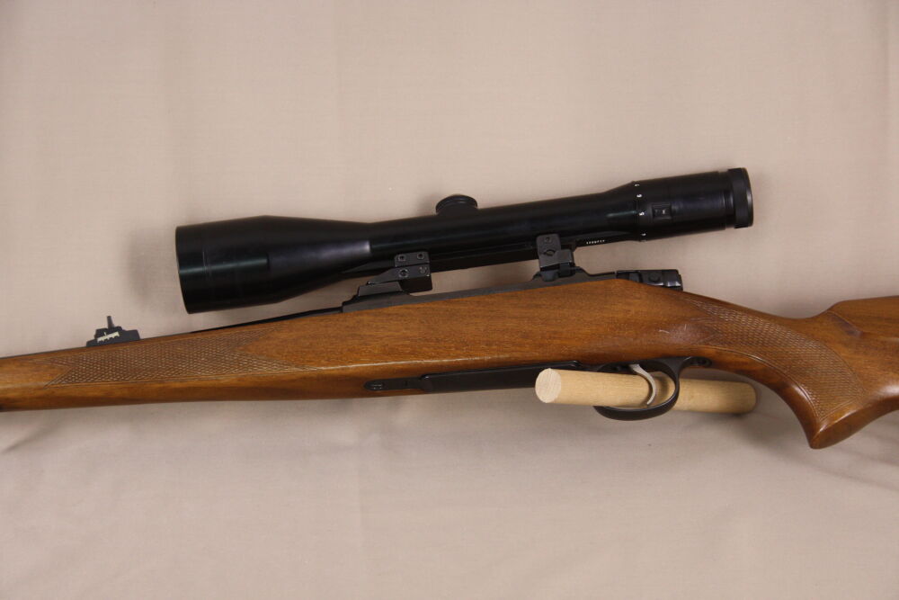 Ausgestattet ist die Büchse mit einem trocken stehenden Direktabzug sowie einem mittels Schwenkmontage montiertem, variablem Zeiss Diavari-Z 2,5-10x52 T*, Abs. 1 (ohne LP).