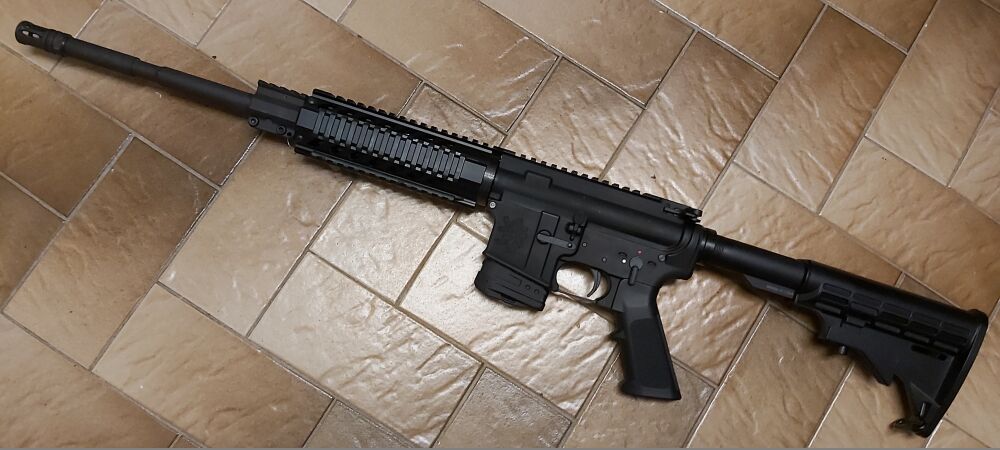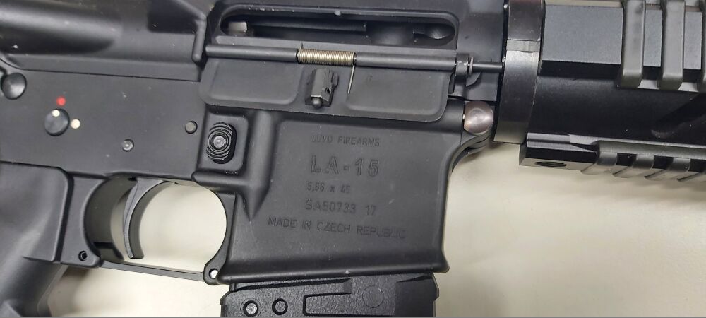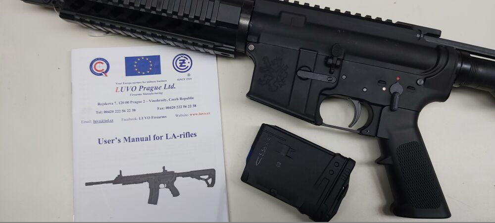 Neuwaffe in der Ovp mit Bedienungsanleitung und einem 10-Schuß Kunststoffmagazin , Lauflänge 42 cm , Gesamtlänge bei ausgezogener Schulterstütze 92 cm , Länge mit eingeschobener Stütze 84,5 cm , 18 cm langer Dural-Handschutz mit 4 umlaufenden Picatinnyschienen , Receiver aus Dural , Schulterstütze und Pistolengriff aus Kunststoff , trocken stehender Flintenabzug , 5-schlitziger Mündungsfeuerdämpfer , keine Visierung vorhanden , originaler Tschechischer Beschuß