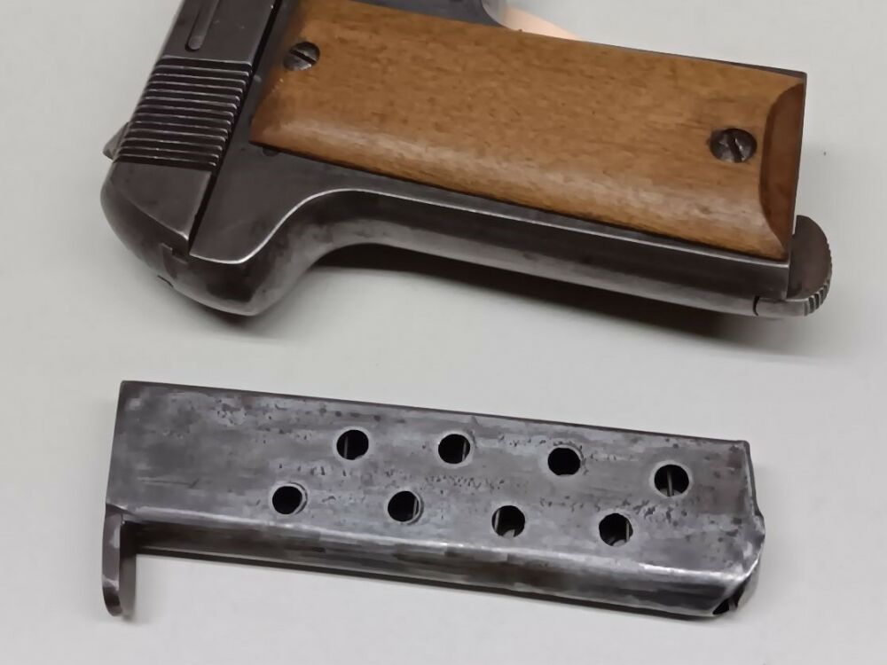 Auf der Pistole sind keinerlei Beschußzeichen vorhanden , daher Überlassung ausschließlich an Sammler / Sachverständige und WHE
