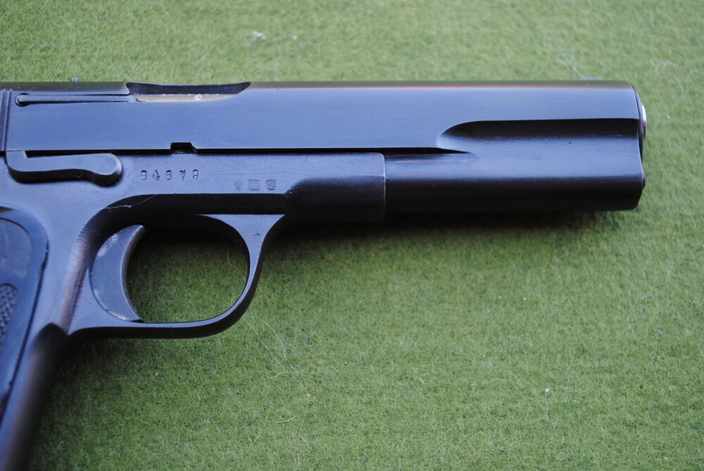 außen und nahezu spiegelblankem Lauf. Das Zerlegen und vor allem wieder Zusammensetzen der Waffe ist nicht ganz ohne und erfordert etwas Erfahrung und Geschick. Der Schlitten dieser Pistole scheint im Gegensatz zum Griffstück einmal leicht überarbeitet worden zu sein ( feldmäßig ? ) Die Waffe hat einen gültigen deutschen Beschuss.