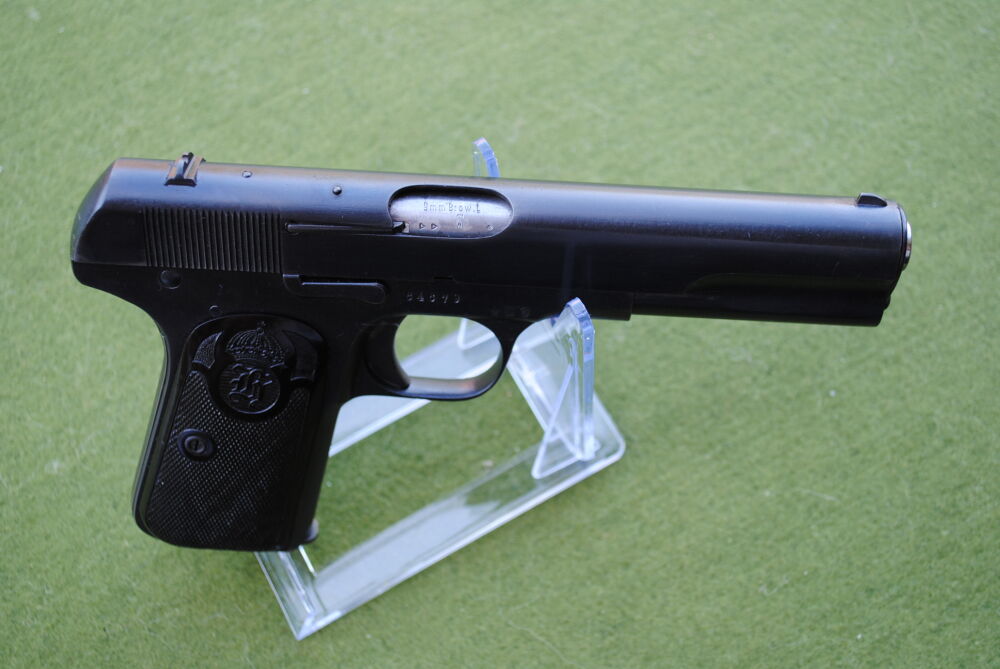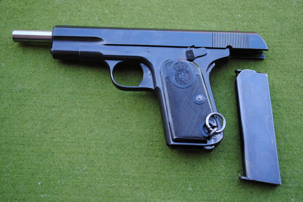 angeboten wird hier eine halbautomatische Pistole aus Schweden und zwar das Modell 1907, gefertigt von Husqvarna im Kaliber 9 mm Browning Long. Zur Geschichte: die belgische FN 1903 wurde durch Schweden in Lizenz hergestellt und als Husqvarna Mod. 1907 in die Armee eingeführt. Die Waffe hat ein 7 schüssiges Magazin und kommt in einem fast markellosen Zustand innen wie