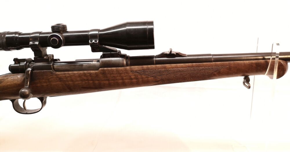Besonderheit: Büchsenmacherarbeit (Unikat), Ursprungswaffe DWM Oberndorf, umgebaute Ordonanzwaffe auf Jagdkarabiner vom BüMa J.Hensel, mit schönem Jagdschaft, im beliebten Jagdkaliber .30-06