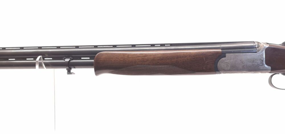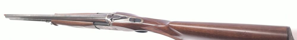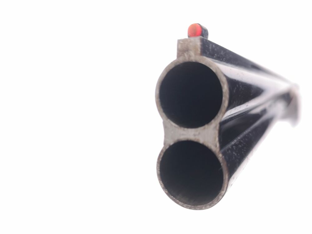 Besonderheit: schöne führige Trapflinte, 71er Lauf, Ejektor, Leuchtkorn, feste Choke (voll & halb), Laufpriorität umschaltbar, schöne Systemgravuren, ventiliertes Laufbündel, robust, minimalster Flugrostansatz unterhalb des Laufbündels (daher auch optisch Note 3, sonst 2 (gut))