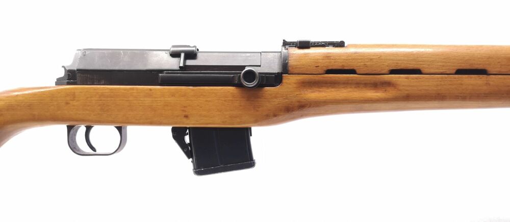 N1854 Rasheed - Karabiner - Note 2 - seltene 2-Schuß Selbstladebüchse, guter altersbedingter Zustand. Schiebevisierung, Sicherung, Laufgewinde, Metallschaftkappe, Stiftkorn im Korntunnel, Magazin entnehmbar, ideal für Sammler & Jäger *** EWB-pflichtig ***