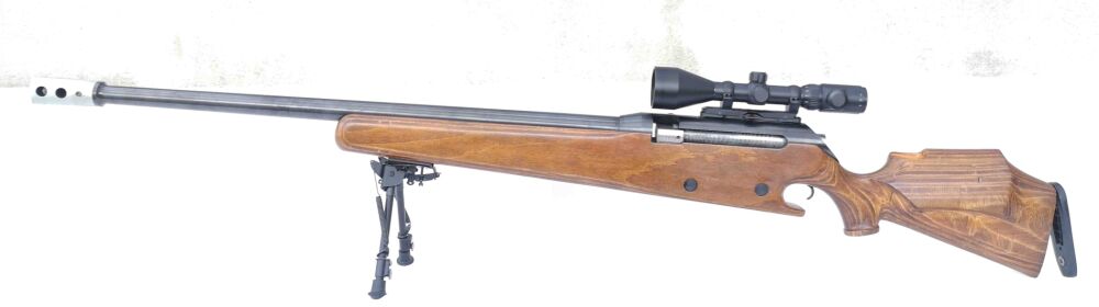 Besonderheit: Einzelanfertigung des BÜMA "König", aus dessen Sammlung, seltene .50 BMG mit Schichtholzschäftung (über 16kg schwer), mit massivem Lauf (Außendurchmesser von 50 auf 35mm zulaufend), Mündungsfeuerdämpfer Steyr HS50, klappbare Schaftkappe (darunter Platz für 5 Patronen), massivem Kammerstengel, Dentler Montageschiene mit Ringen für ZF Aufnahme, Zweibein HARRIS SL, Waffe im gepflegtem Zustand, ein absolutes Unikat, empf. Munition SAX 50BMG Long Range 600grs. *** ACHTUNG, NUR ABHOLUNG MÖGLICH, kein Versand aufgrund Überlänge! ***