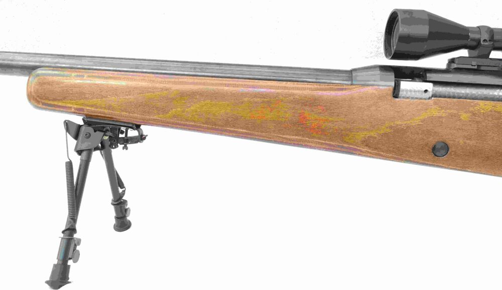 N3006 König Suhl - ohne - Note 2 - Einzelanfertigung des BÜMA "König", aus dessen Sammlung, seltene .50 BMG mit Schichtholzschäftung (über 16kg schwer), mit massivem Lauf (Außendurchmesser von 50 auf 35mm zulaufend), Mündungsfeuerdämpfer Steyr HS50, klappbare Schaftkappe (darunter Platz für 5 Patronen), massivem Kammerstengel, Dentler Montageschiene mit Ringen für ZF Aufnahme, Zweibein HARRIS SL, Waffe im gepflegtem Zustand, ein absolutes Unikat, empf. Munition SAX 50BMG Long Range 600grs. *** ACHTUNG, NUR ABHOLUNG MÖGLICH, kein Versand aufgrund Überlänge! *** *** EWB-pflichtig ***
