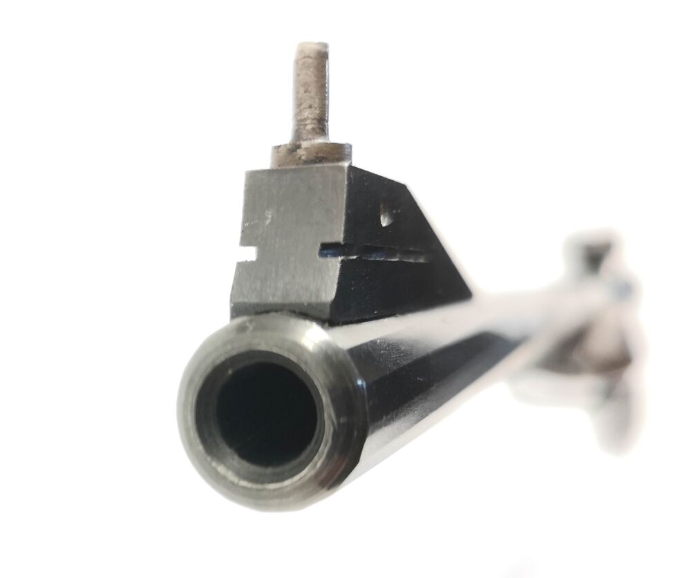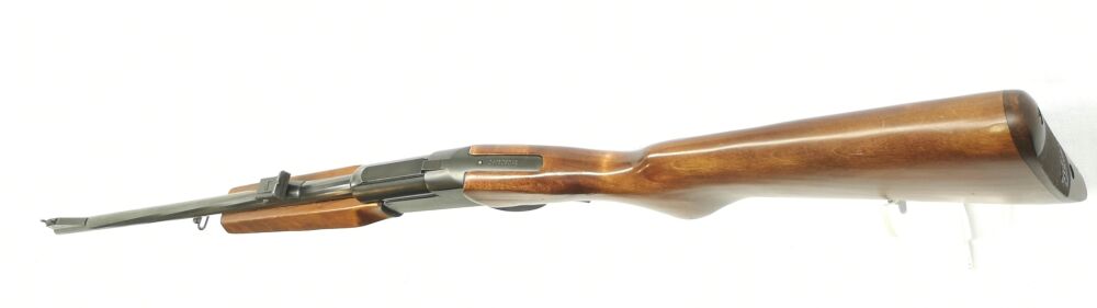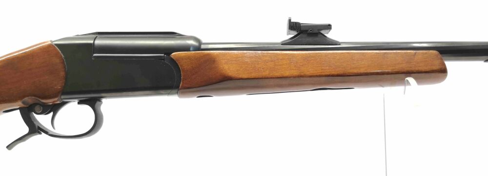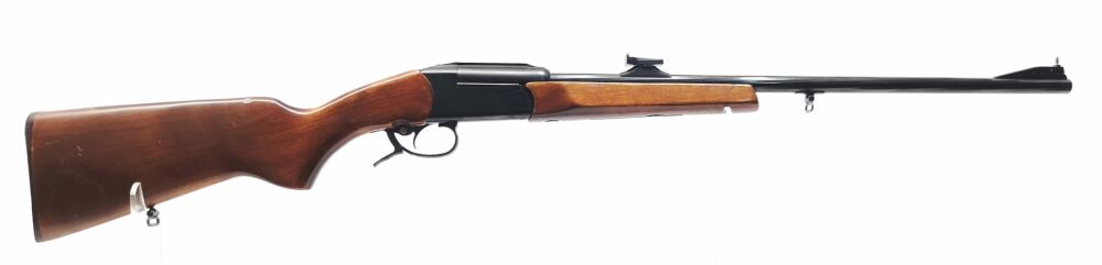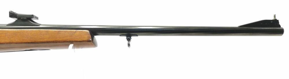 Besonderheit: russische Kipplaufbüchse (Einzellader), mit verstellbarer Kimme und Stiftkorn, 11mm Prismenschiene für spätere Optikmontage, robuste Waffe, äußerlich gedrehter Lauf (schick), Kunststoffschaftkappe, Riemenbügelösen und Hülsenauszieher, Sicherung oberhalb des Abzugszüngels