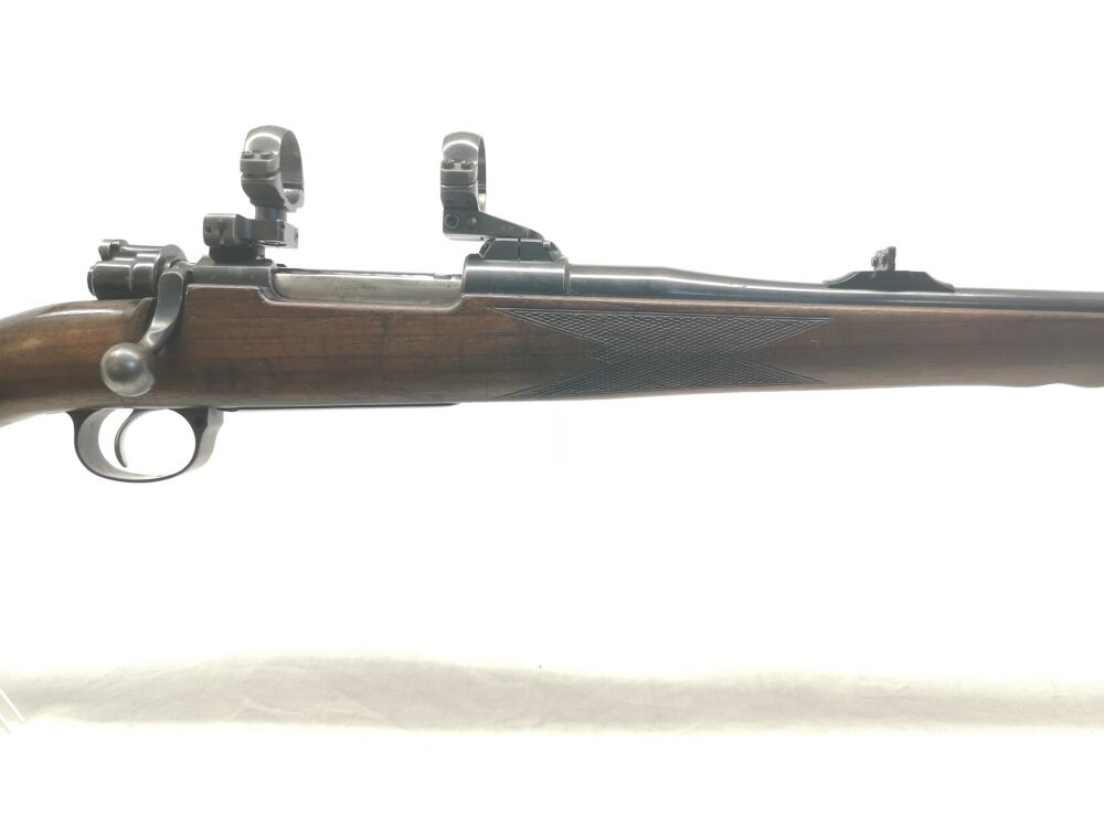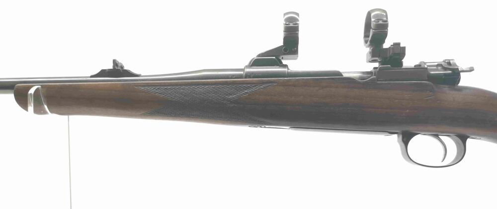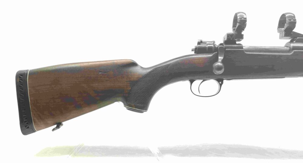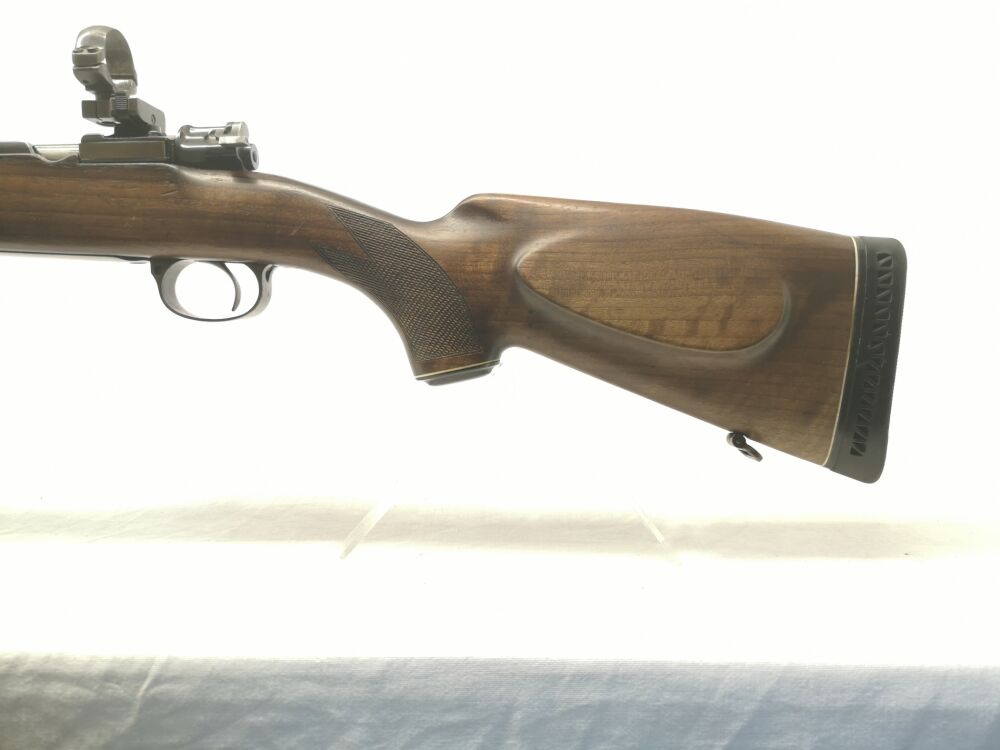 Besonderheit: Jagdwaffe aus dem Hause Frankonia im beliebtem Jagdkaliber (.30-06 Springfield), mit Schwenkmontage für 30er Mittenrohrdurchmesser (neues ZF somit problemlos möglich), Holz & Metall im gepflegten aber genutzten Zustand, keine Beschädigungen, allerdings ist die Laufbrünierung leicht abgerieben und das Holz hat Nutzungsspuren, gekröpfter Kammerstengel, Kimme & Korn (mit Leuchtbalken), ventilierte Gummischaftkappe, Riemenbügelösen und Rückstecher (französicher Stecher), eigentlich Note 2,5 Gesamtzustand