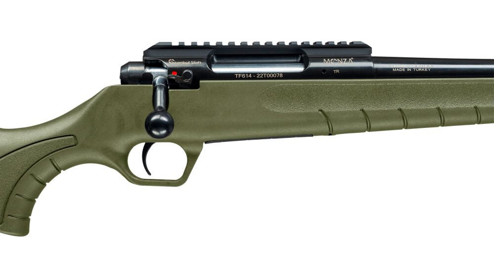 Die Repetierbüchse MONZA bietet alles was man von einem modernen Jagdgewehr erwartet. Ein solides System mit konventioneller Verriegelung, seitlicher Sicherung, Direktabzug und aufgesetzter Picatinny-Schiene, ein leichtgängiger Verschluss, einen präzise schießenden Lauf mit Mündungsgewinde, ein Metallmagazin und einen ergonomischen Kunststoff-Schaft mit Schaftrückenverstellung.