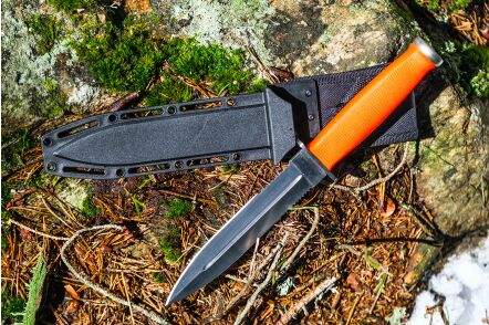 The NeverLost wild boar sticking knife has a full-tang blade which is sharpened