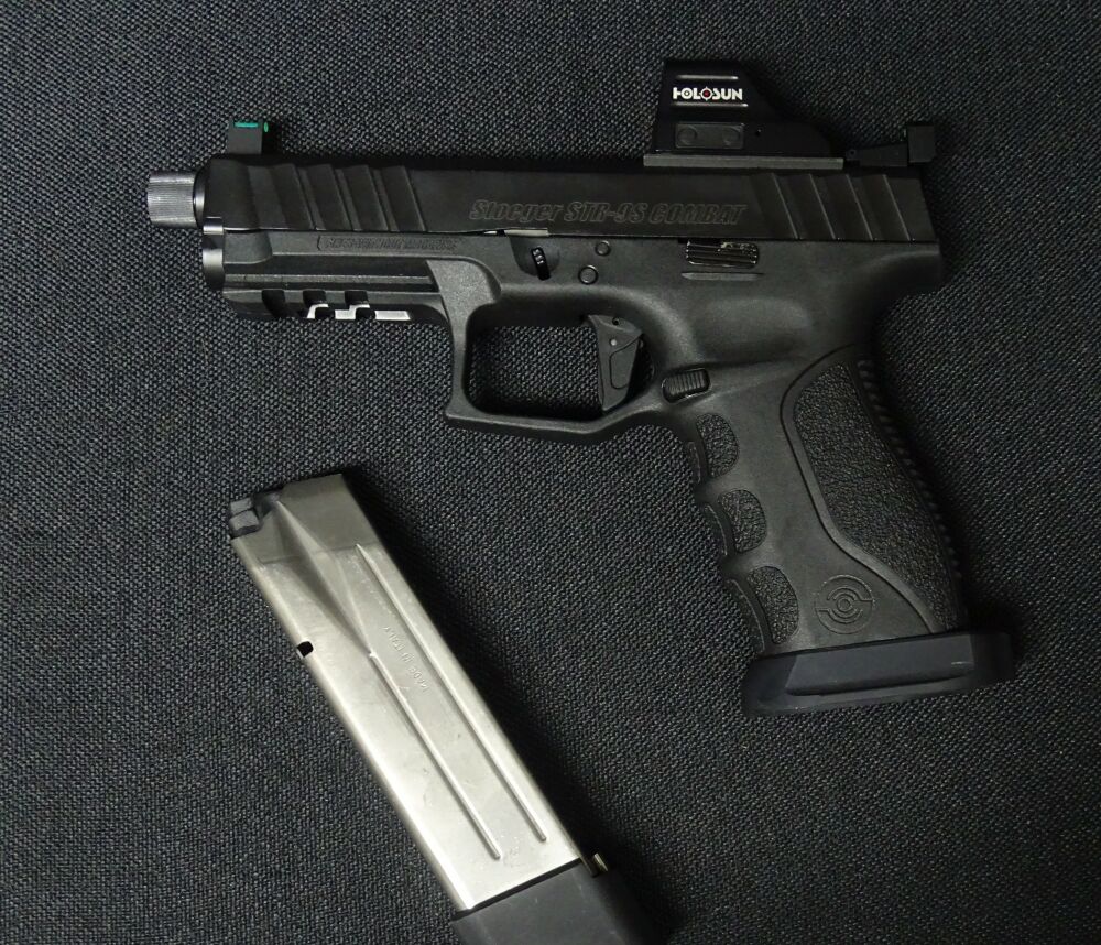 Die Pistole STR9 wird von Stoeger hergestellt, einer Marke, die zur Beretta Gruppe gehört. Die halbautomatische Pistole mit Schlagbolzenschloss und Polymergriffstück hat ein Holosun Rotpunktvisier montiert.