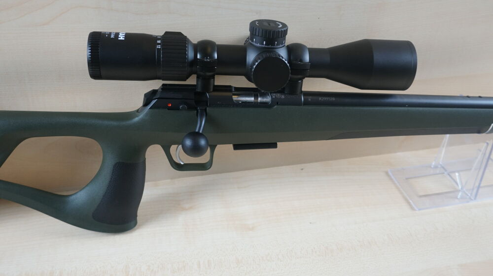 Repetierbüchsem CZ, Modell 457 Ergo im Kaliber 17 HMR mit Lochschaft, 52,5 cm Lauflänge und Mündungsgewinde, 5 Schuß Magazin, Aufkippmontage und Zielfernrohr Akah, 2 - 12 x 44 Leuchtabsehen 4. ...weiterlesen