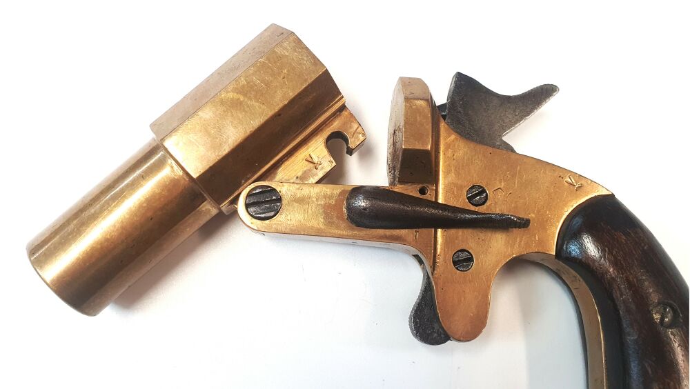 !Gebauchtwaffe! Signalpistole Unbekannt 1917 - 4 (Signal) leicht gerbauchte Signalpistole mit unbekanntem Hewrsteller aus dem Jahr 1917 Sehr schönes Messing gehäuse. Laufinneres ist gla... ...weiterlesen
