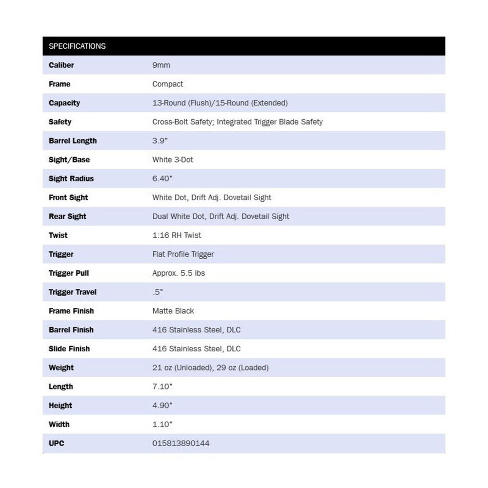 Kaliber 9mmLuger, ha.Pistole MC2c Compact schwarz brüniert matt C.B Safety-Cross Bolt Safety 13+1 Patronen, Lauflänge 3,9"/9,9cm, Visierung 3-Dot weiß, passende Visierung Kimme GLOCK und Korn SIG Sauer #6, Abzugssicherung, CBS-Cross Bolt Safety, 1/ein Magazin 13 Patronen schwarz, Mossberg USA. Verkauf solange vorrätig!