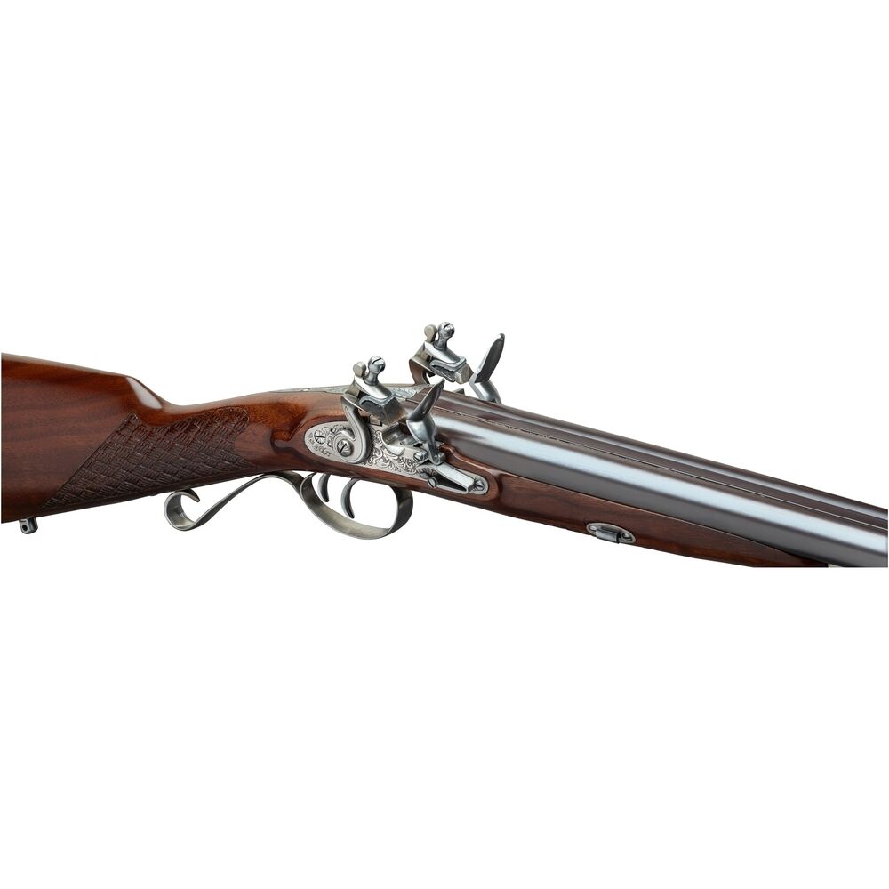 Die Vorderlader Doppelflinte Luxus ist eine wunderschöne Reproduktion einer Steinschloss-Schrotflinte des 18. Jahrhunderts. Elegant und raffiniert findet sie ihren Platz in einem typischen Jagdkontext, obwohl sie außerordentlich ästhetisch in Augenschein trifft.