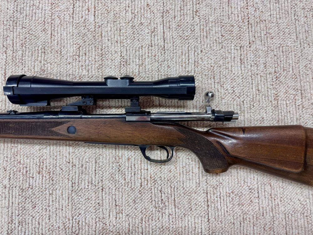 Es handelt sich um eine Repetierbüchse von Santa Barbara im Kaliber 8 × 57 IS. Ausstattung: Lauflänge: 62 cm Schaftlänge: 35,5 cm Optik: Jena DDR (6 × 42); Absehen 1 Schwenkmontage EAW ... ...weiterlesen