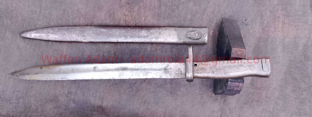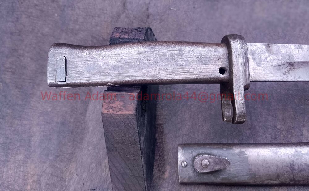 Ganzstahl Notbajonett Kaiserreich, sehr schöner Zustand, Scheide mit Resten Original Lack, Drücker makellos, Original Zustand, keine Stempelung sichtbar. Hersteller??