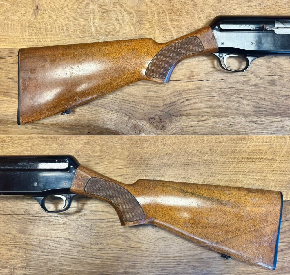 Verkauft wird eine: Selbstladeflinte, Franchi, Kal.: 12/70 Lauflänge: 740mm Schaftlänge: 360mm Die Waffe hat starke Gebrauchspuren, siehe Fotos. Brünierung und Basküle abgewetz, kein Rost. Tie... ...weiterlesen