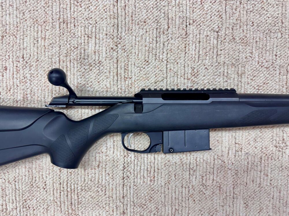 Es handelt sich um eine Repetierbüchse von Tikka im Kaliber .308 Winchester. Ausstattung: Lauflänge: 51 cm Schaftlänge: 36 cm Picatinny-Schiene Flintenabzug Mündungsgewinde: 5/8 × 24 ... ...weiterlesen
