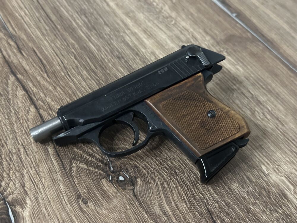 ERMA 552 – .22 l.r. Gebrauchte, kompakte Selbstladepistole im Kaliber .22 l.r. Kleine, führige Bauweise – ideal als Fangschusspistole für die Fallenjagd. Holzgriffschalen, 1 Magazin. ... ...weiterlesen