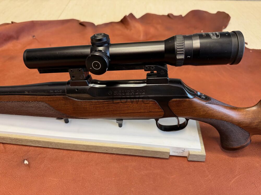 Sauer 202 Stutzen - Kaliber: 9,3x62 - Schaftlänge: 36cm - Lauflänge: 52cm - Gesamtlänge: 103cm - Kombi Abzug ( Flintenabzug mit Französischen Stecher) - Einsteckmagazin - EAW Schwenkmon... ...weiterlesen