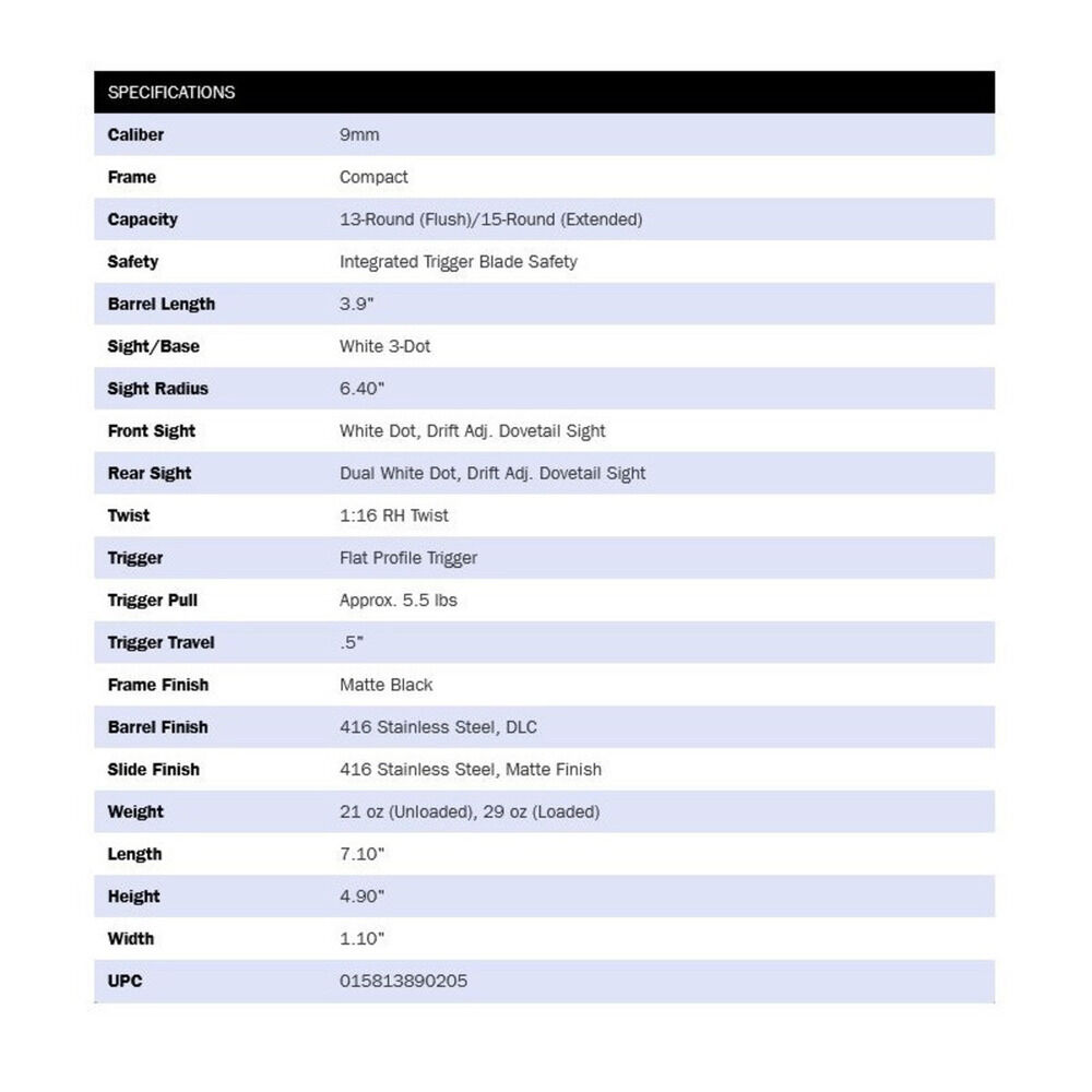 Kaliber 9mmLuger, ha.Pistole Modell MC2c Compact Stainless Two-Tone 13+1 Patronen, Lauflänge 3,9"/9,9cm, Visierung 3-Dot weiß, passende Visierung Kimme GLOCK, Korn SIG Sauer #6, Abzugssicherung, 1/ein Magazin 13 Patronen schwarz, Code 89020 Mossberg USA. Verkauf solange vorrätig!