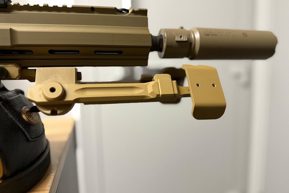 • SCHULTERSTÜTZE: Langenverstellbare Slim-Line-Schulterstutze mit 5 Rastpositionen