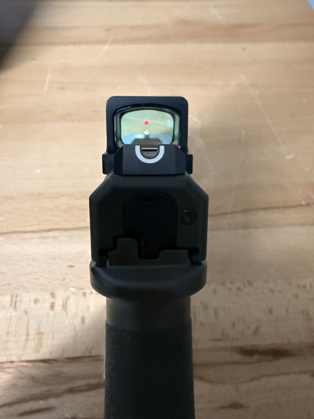 - Sehr flache Bauhöhe. Vorhandene Kimme und Korn können meist als Backup-Visierung genutzt werden.