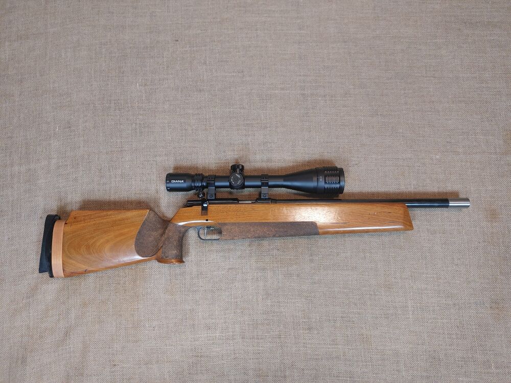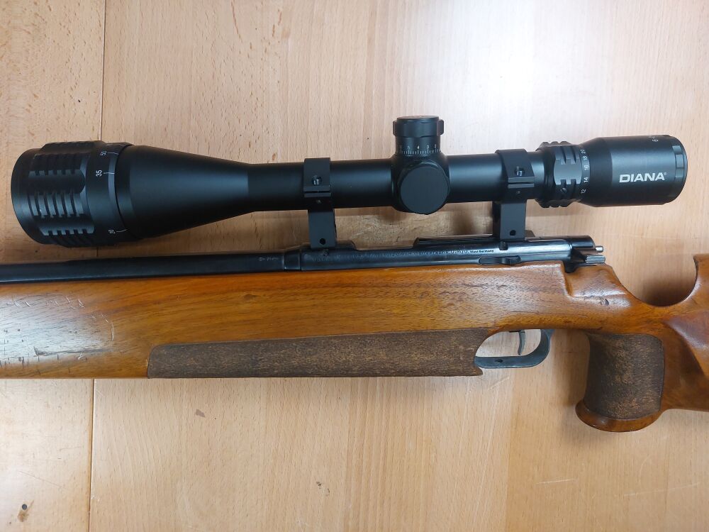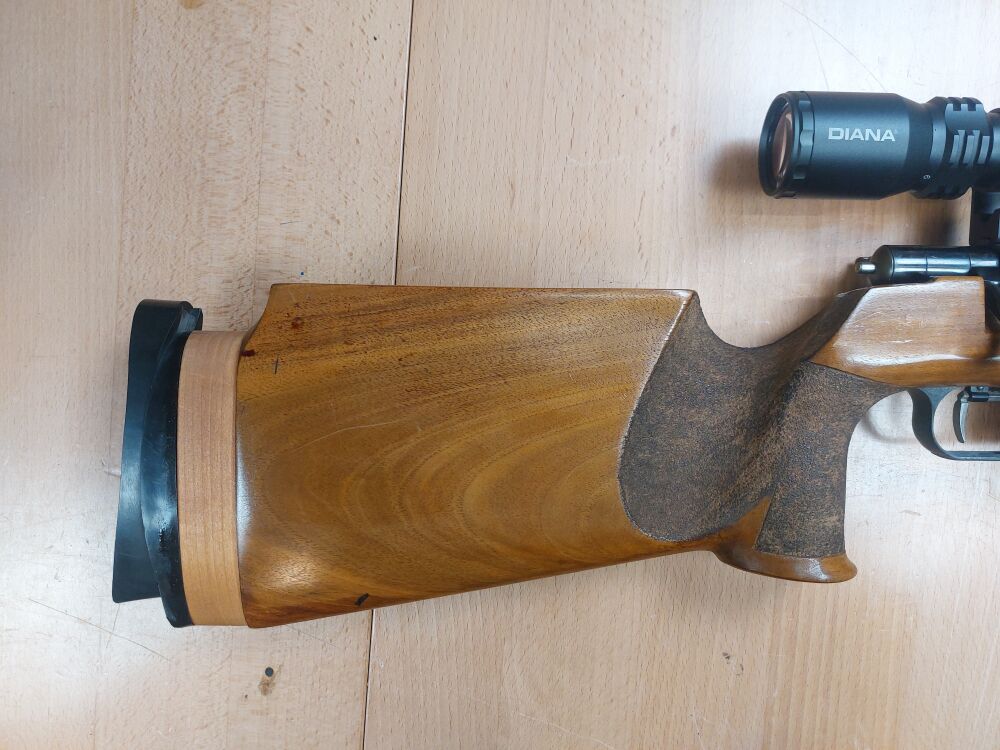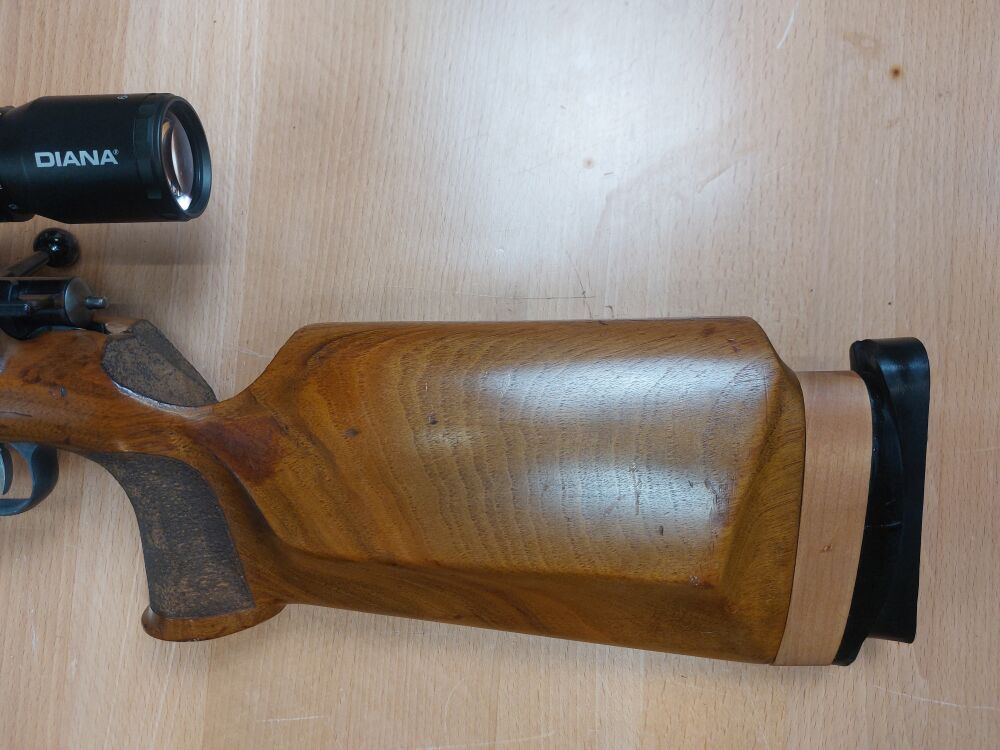 Einzellader Anschütz, Ulm Modell Match 54 Kaliber .22 lr Lauflänge 400 mm Innenliegendes Gewinde Schaftlänge 350 mm Abzugzüngel ist verstellbar Gesamtlänge 900 mm Beschuss 19xx Matcha... ...weiterlesen
