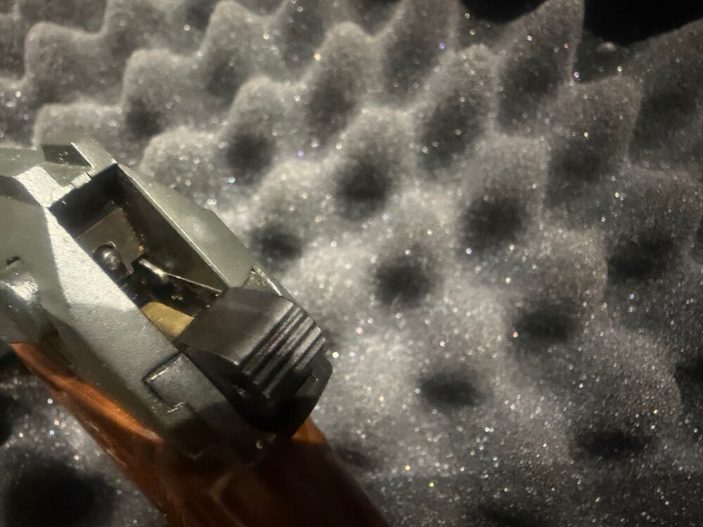 Sie hat eine manuelle Sicherung und 6 Schuss Magazin. Eine recht handliche Pistole.