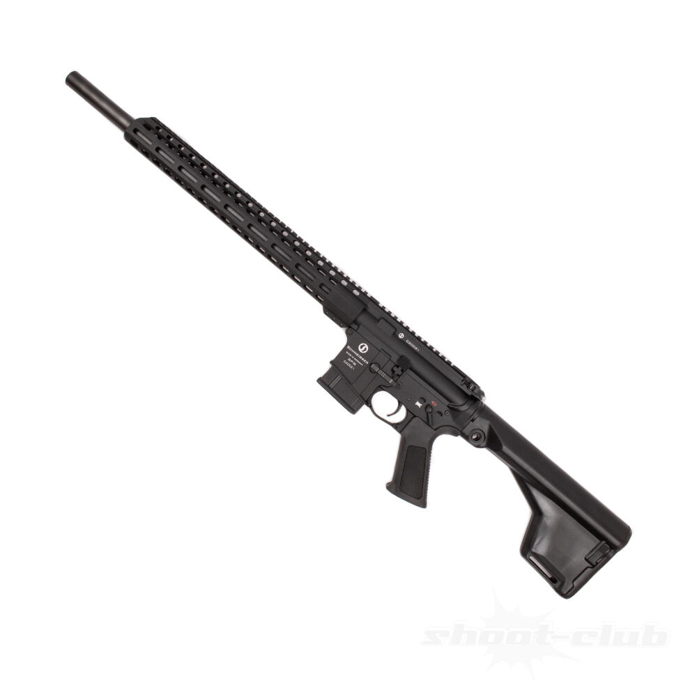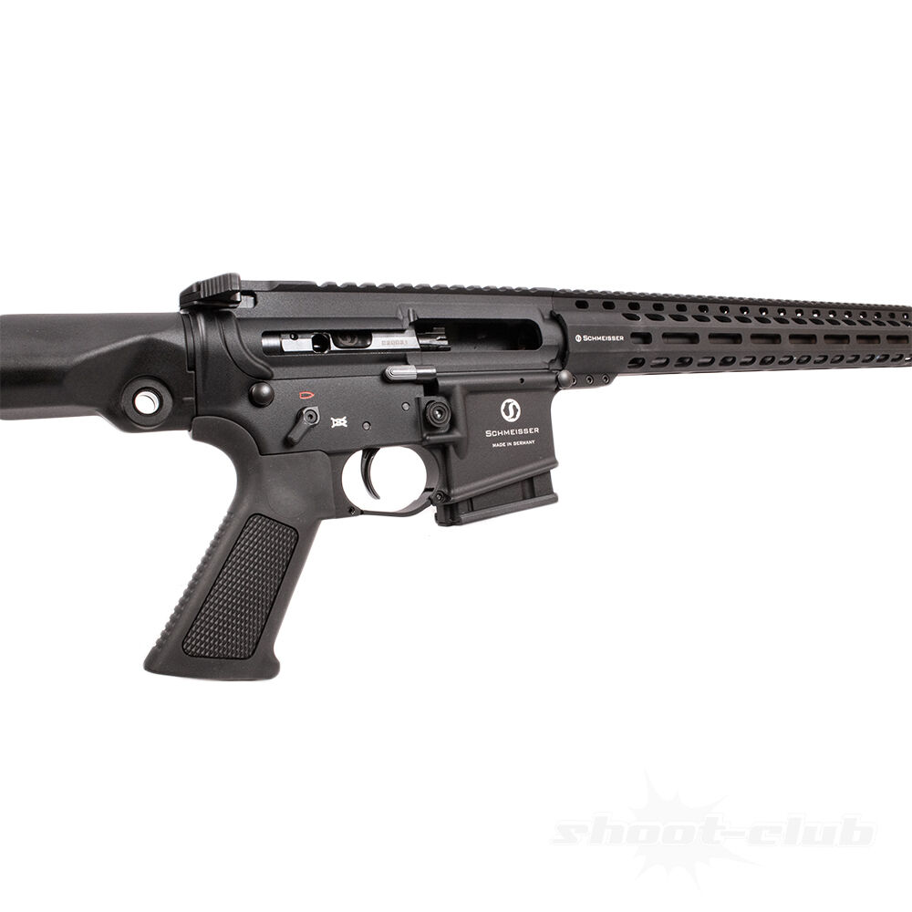 Des Weiteren kann die Schmeisser mit einem Free-Floated Handschutz, einem Hinterschaft mit integriertem 10 Schuss Reservemagazin und dem Staufach im Pistolengriff überzeugen.