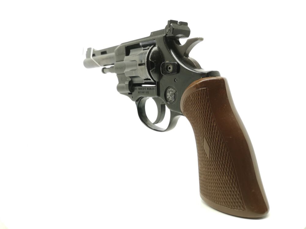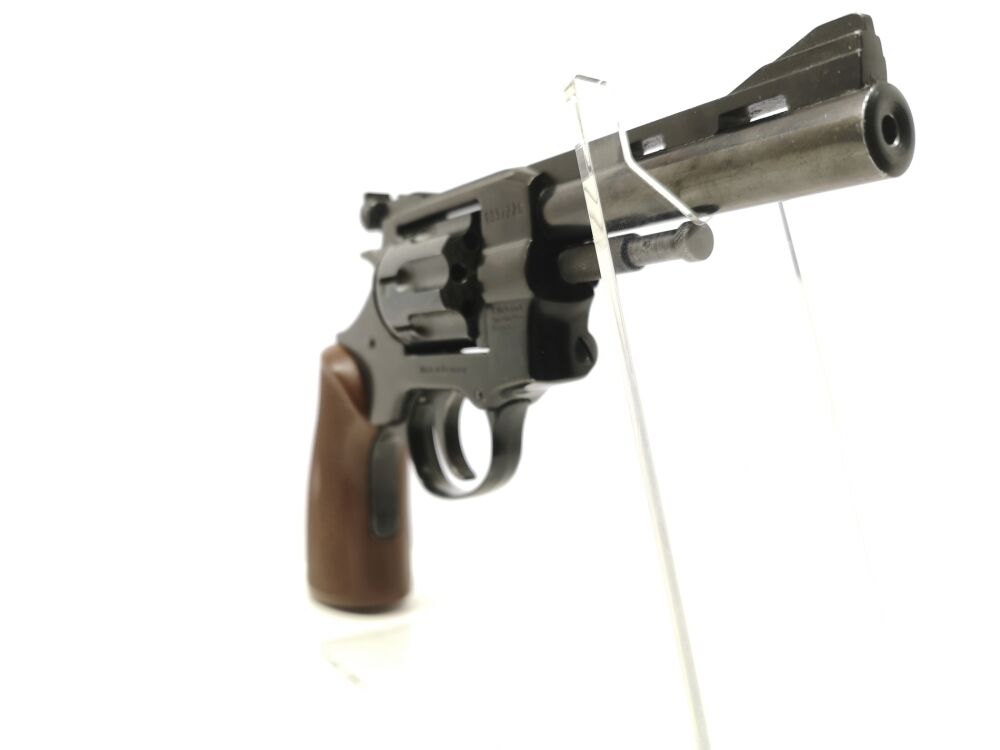 Besonderheit: Zimmerrevolver aus dem Hause Weihrauch im Kal. 4mmM20, bedürfnisfrei, voreintragspflichtig, mit verstellbarer Kimme, Kunststoffgriffschalen, 8-Schuss-Trommel, optisch im guten Zustand (Note 2), technisch in Ordnung, 100mm Lauf (4") *** voreintragspflichtig ***