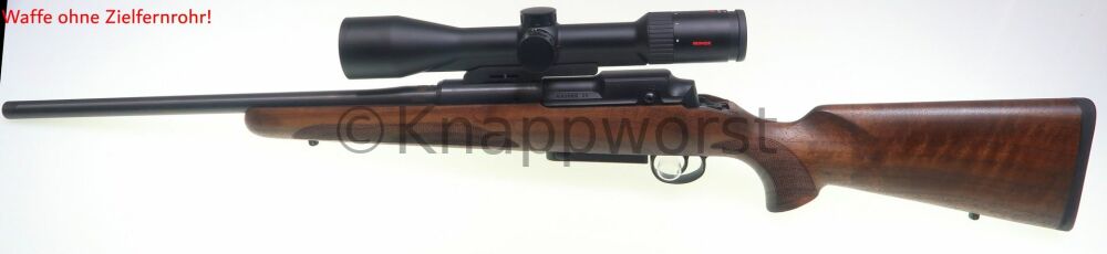Der gerade Kammerstengel ist ergonomisch optimiert über dem Abzug angebracht für schnellstes Repetieren ohne Schnickschnack. Die Zweistellungssicherung wirkt direkt auf das Schlagstück und liegt gut fühlbar zwischen Kolbenhals und Verschluss.