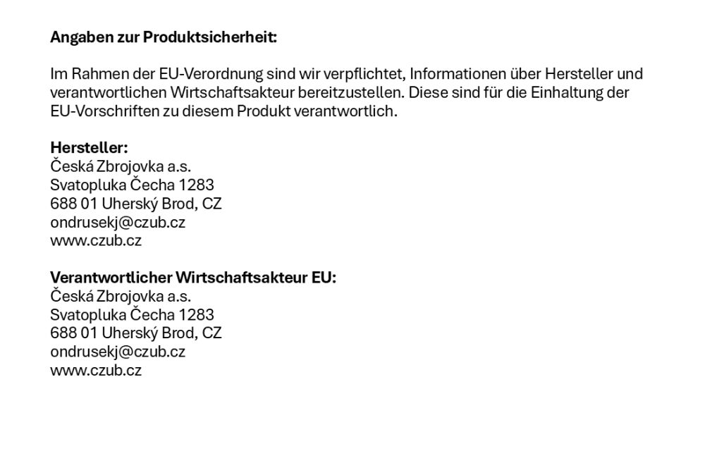 Im Rahmen der EU-Verordnung sind wir verpflichtet, Informationen über Hersteller und verantwortlichen Wirtschaftsakteur bereitzustellen. Diese sind für die Einhaltung der EU-Vorschriften zu diesem Produkt verantwortlich.