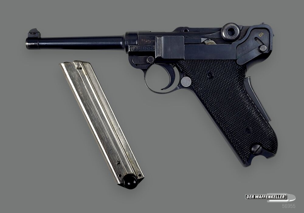 Angeboten wird eine Pistole Waffenfabrik Bern im Kaliber 7,65 Para. 3. Ausführung mit schwarzen Bakelit Griffschalen. Nummerngleich mit original Brünierung. Evtl. privatisierte Ausführung (siehe St... ...weiterlesen