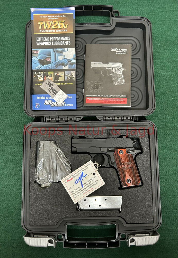 Pistole der Fa. Sig Sauer Model P 238 Kaliber 9 mm Browning kurz Original Koffer 2 Magazine Original Holster Preis EURO 690,00 ...weiterlesen