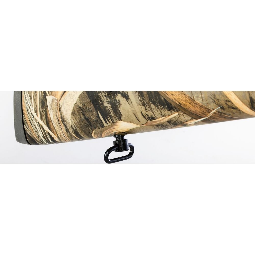 Die Waffe ist mit einem Kunststoffschaft ausgestattet, der in einem original Max5 Camo-Muster gestaltet ist. Dieses Muster ist speziell dafür entworfen, in natürlichen Umgebungen, wie zum Beispiel im Schilf oder unter Geäst, kaum auffällig zu sein.