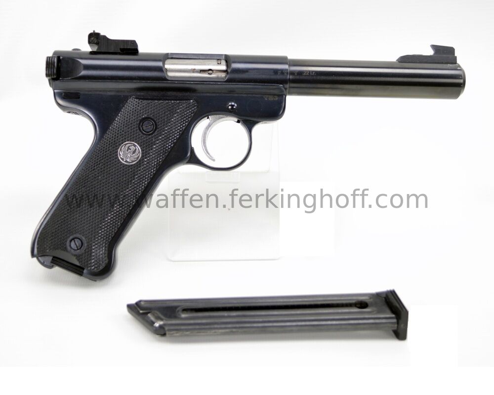 Kaliber .22lr, ha.Pistole Ruger Modell Mark II Target schwarz 10+1 Patronen, Lauflänge 5,5Inch/14cm, Visier Höhe und Seite verstellbar, 2/zwei Magazine 10/zehn Patronen, Bedienungsanleitung, Original ... ...weiterlesen