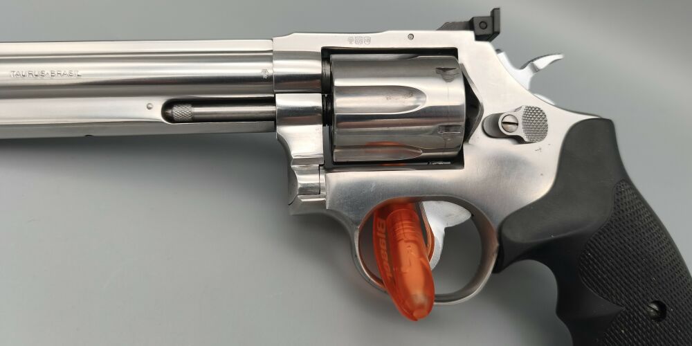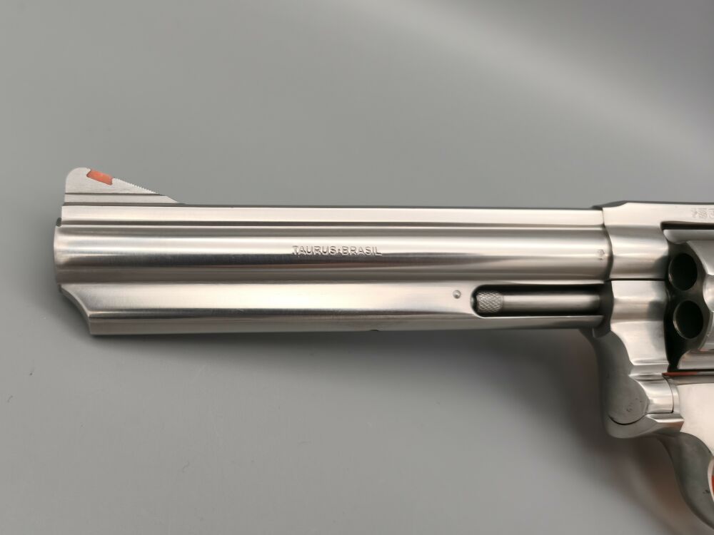 Gebrauchter Taurus Revolver in sehr gutem voll funktionsfähigem Zustand. Stainless. Korn mit roter Kontrasteinlage und Kimme mit großem Kimmenblatt. Kimme verstellbar. Gummigriffschalen. Sehr guter Sc... ...weiterlesen