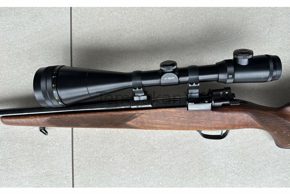 Auf der Waffe ist ein Zielfernrohr 4–12×56 montiert, das sich gut für jagdliche Einsätze, insbesondere bei Dämmerung, eignet.