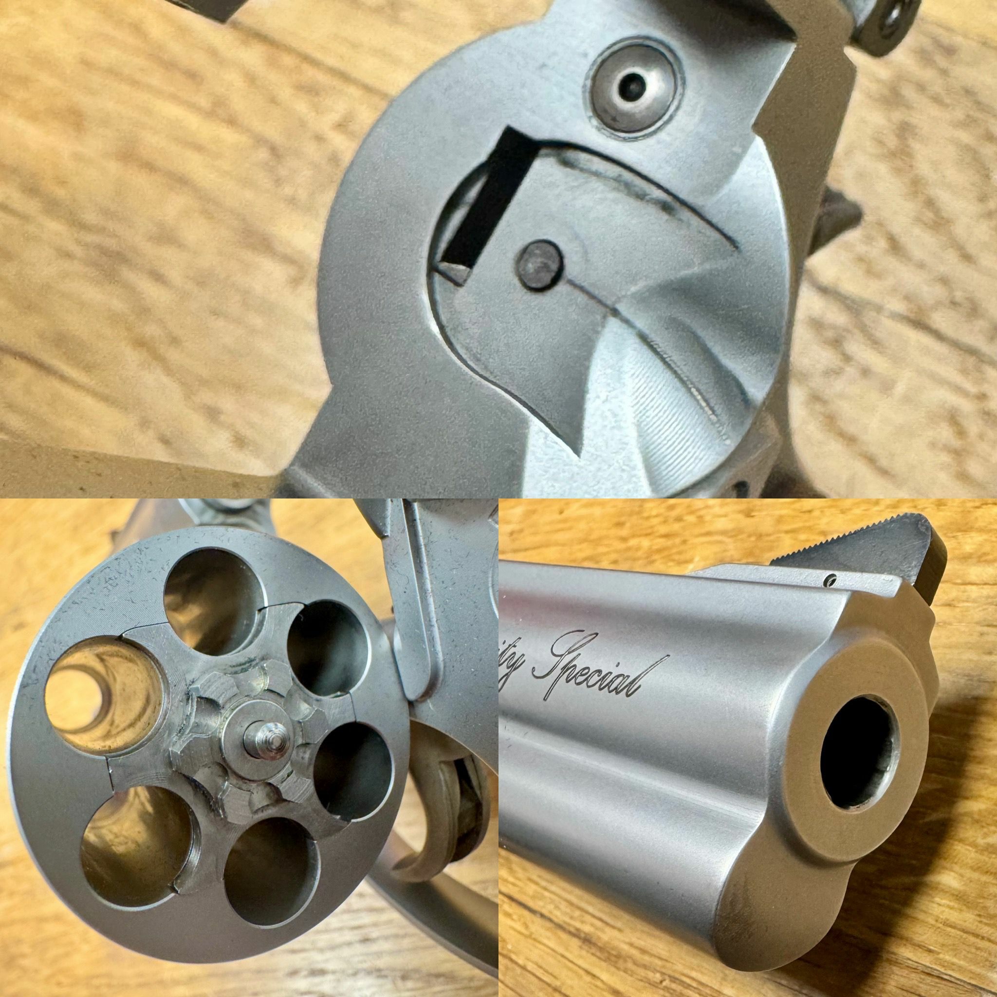 Es handelt sich um einen ungeschossenen Revolver aus dem Jahr 2013. An der Waffe sind Holzgriffschalen montiert, sie hat ein mattes stainless Finish und keine Gebrauchsspuren.