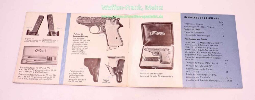 Original Bedienungsanleitung Walther für das Modell PP in deutscher Sprache. Druckjahr ca. 1950. 16,5cm x 11,5cm, 180Seiten, Zustand 2