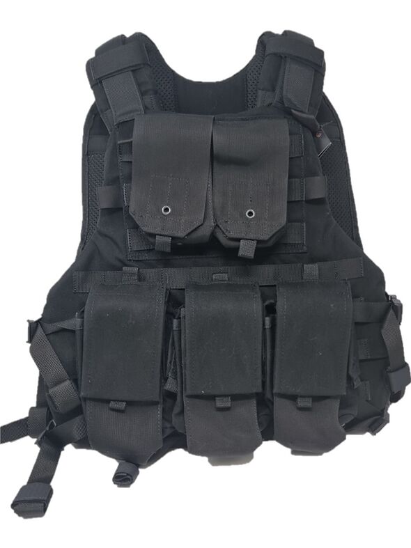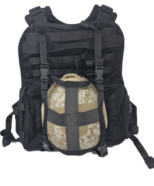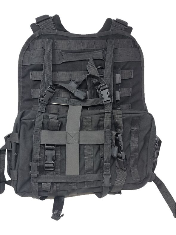 Die Rückseite der Weste ist MOLLE-basiert, was eine flexible Anordnung der Fächer ermöglicht; außerdem kann auf der Rückseite der Weste ein 15-Liter-Rucksack für die persönliche Ausrüstung befestigt werden.