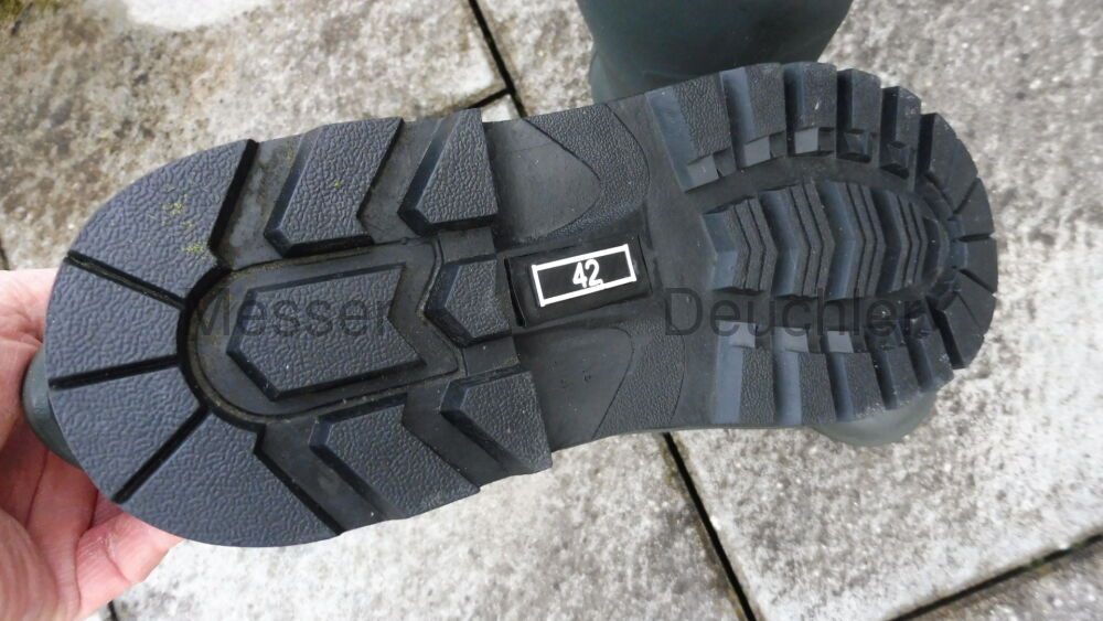 Lieferbar in folgende Größen 42 und 43 Farbe: Dunkel-olive Empfohlen bis -25° Strapazierfähiger, natürlicher Qualitätskautschuk Bewährter Leisten 4 mm Neoprenfutter Einstiegsfalte mit ve... ...weiterlesen