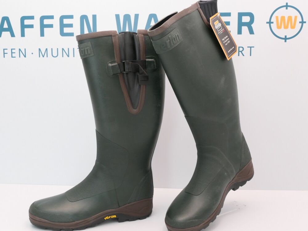 Flacher Gummistiefel mit doppeltem ausgewalztem POLYESTER. Faltwulst aus Gummi mit regulierendem Band. Gummiband und Schuhhals aus aufgeraute Gummi für mehr Schutz. Vibram® Sherwood Außensohle aus Gummi mit Doppeldichte für mehr Festigkeit und Dämpfung. Hinterer elastischer Schuhhals, um das Abrollen des Fußes beim Wandern zu unterstützen.