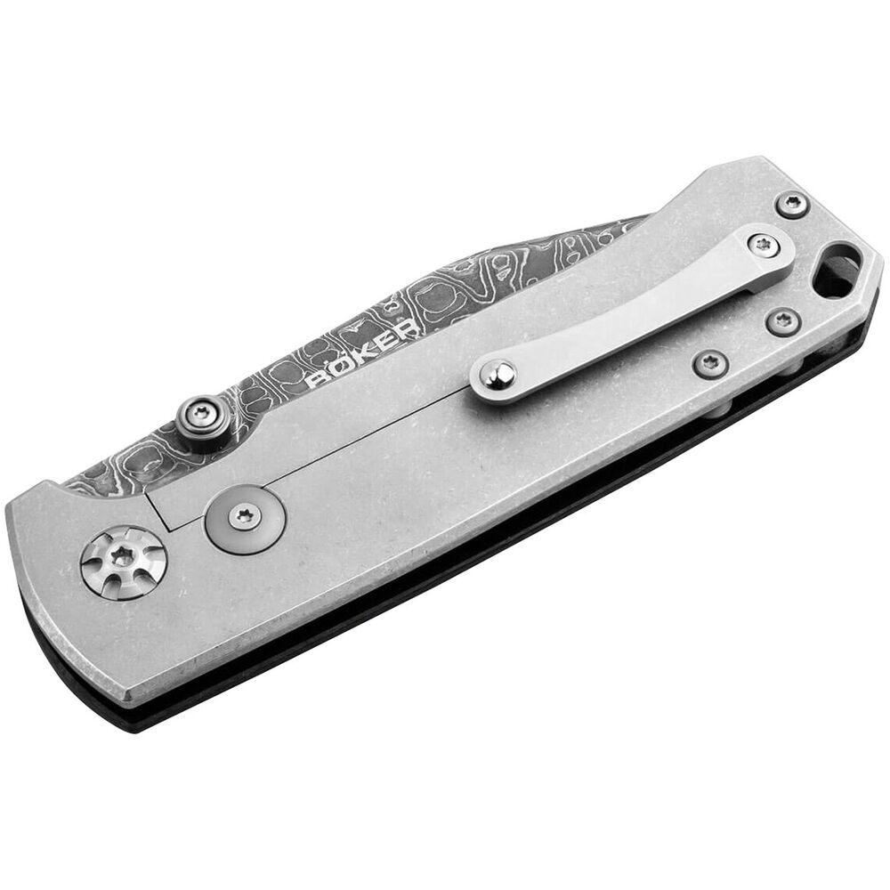 Das geradlinige Böker Tiger-Damast ist mit einer einzigartigen Damastklinge ausgestattet, die aus dem Stahl des bei Bauska zerstörten Kampfpanzers gefertigt wird. Der nicht rostfreie Mosaikdamast wird von Hand von Chad Nichols im Muster Intrepid geschmiedet und erinnert an die Panzerspuren, die von den schweren Ketten des Tigers im Boden zurückbleiben. Anders als bei herkömmlichem Damast werden bei der Herstellung von Mosaikdamast keine Lagen erzeugt, sondern komplexe Damastbarren in einem aufwendigen und sehr komplizierten Prozess von Hand zu einem Mosaik verschmiedet.