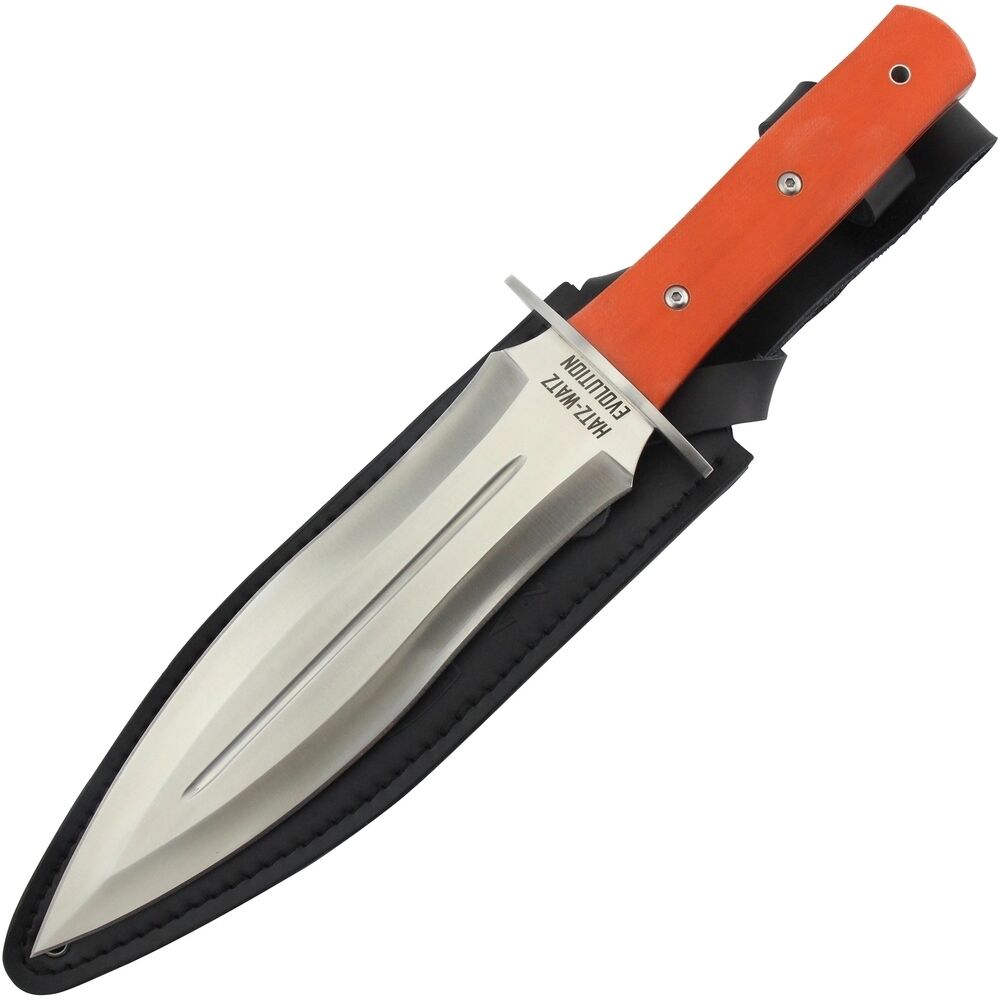 Das signalorangene Griffstück aus G10 lässt das Messer jederzeit leicht wieder auffinden und ist mit einer Fangriemenöse ausgestattet. Gesichert wird es mit zwei festen Nieten. Der glasfaserverstärkte Kunststoff G10 ist besonders robust und sehr leicht zu reinigen.
