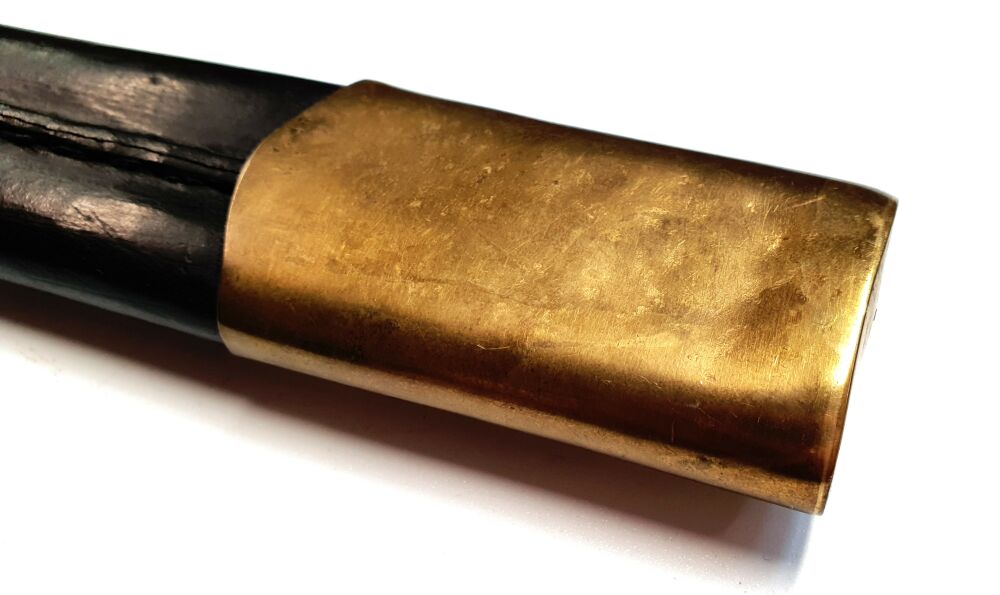Gebrauchtes Bajonettreplik für Remington Zouave Inklusive Lederscheide mit Messingbeschlägen.