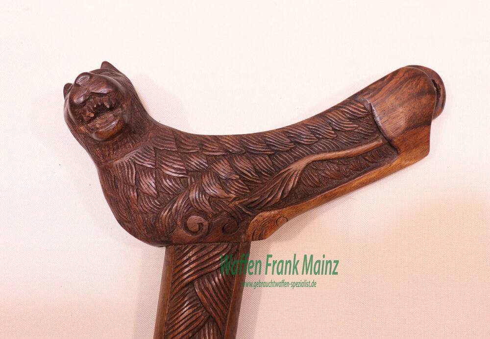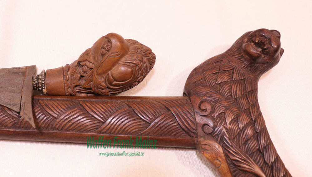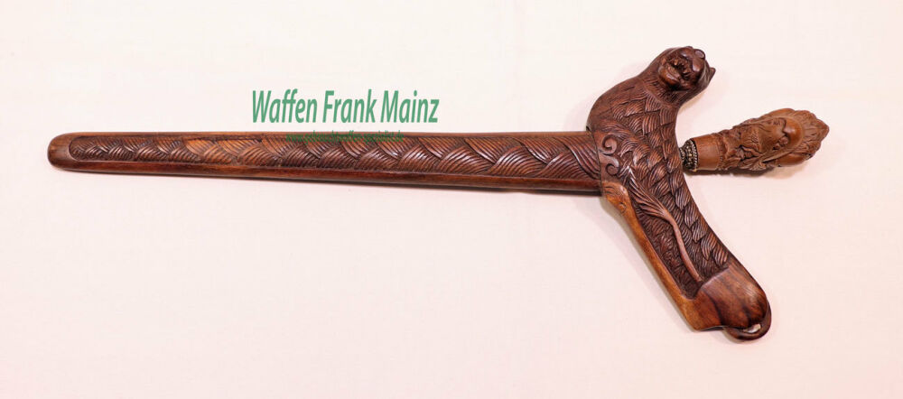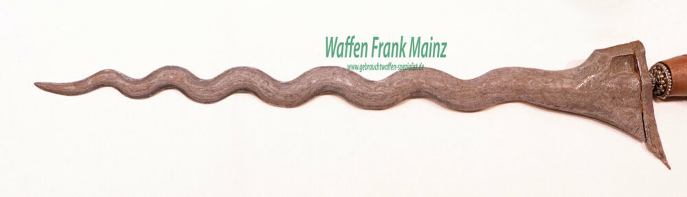 Baujahr: um 1950, Zustand: 2-3, Klingenlänge: 37,5cm, Gesamtlänge: 48cm,Ehrenkries mit geflammter Mondeisen-Damastklinge, Griff und Scheide mit hochwertiger Holzverschneidung....vermutlich aus dem ind... ...weiterlesen