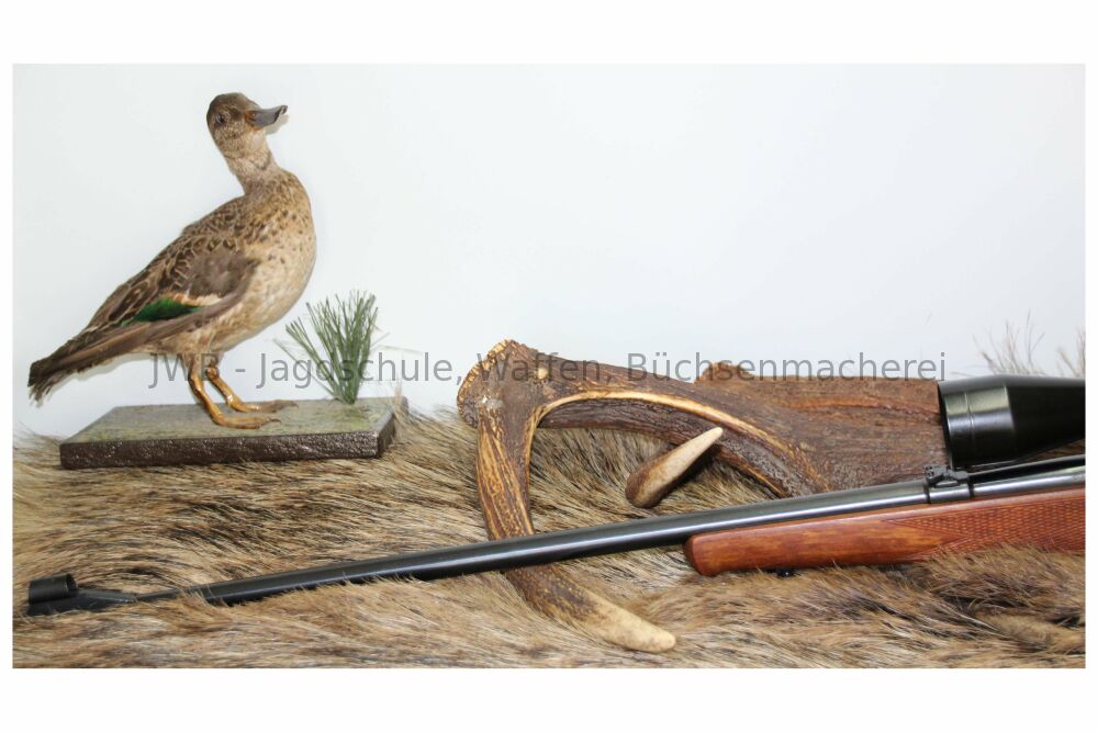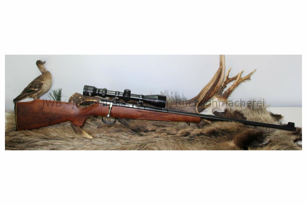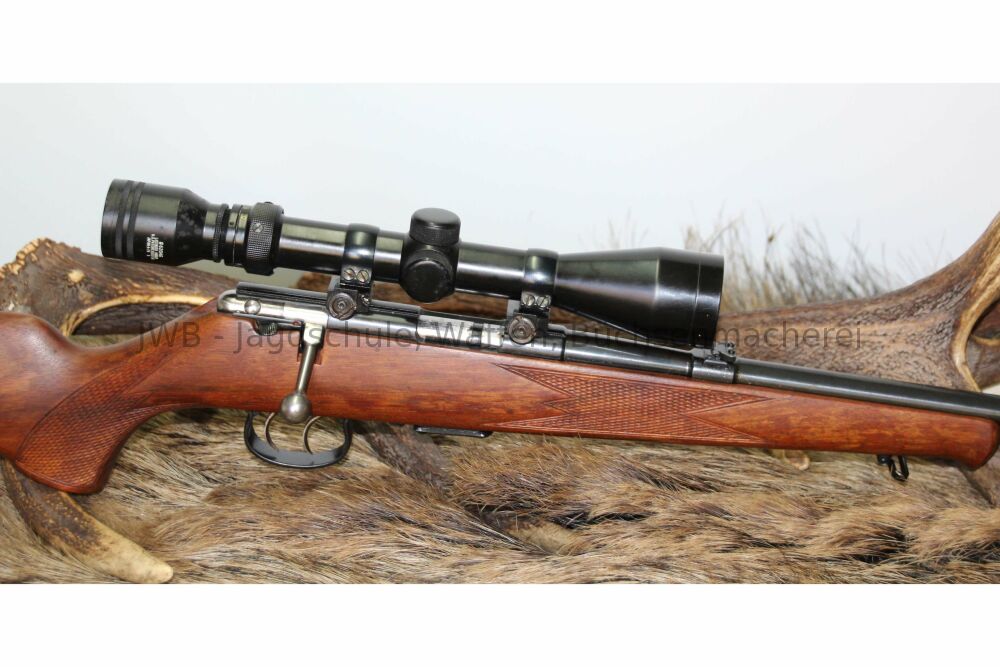Anschütz Modell 1516 im Kaliber .22 Win. Mag. mitTasco 3-9x40AufschubmontageEinsteckmagazindeutscher Backedeutschem StecherSchaftlänge 37 cmLauflänge 58 cmGesamtlänge 107 cmZustand 2 ...weiterlesen